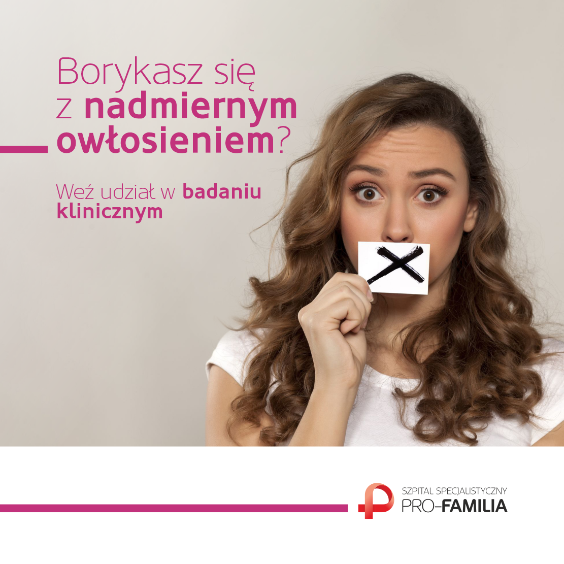 Jesteśmy zespołem specjalistów z zakresu medycyny prowadzącym badanie naukowe nad nowym lekiem na nadmierne owłosienie (hirsutyzm).