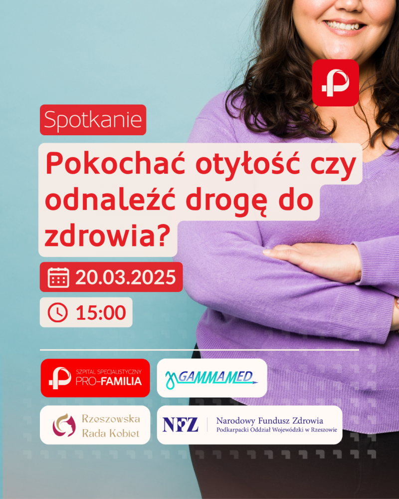 Wspólnie z Centrum Medycyny Nuklearnej GAMMAMED, Narodowym Funduszem Zdrowia oraz Rzeszowską Radą Kobiet serdecznie zapraszamy wszystkich na wyjątkowe spotkanie poświęcone otyłości - jej przyczynom, skutkom oraz nowoczesnym metodom wsparcia i leczenia.